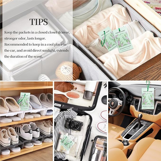 - PACKAGE INCLUDED - 14 x 0.35oz Eucalyptus sage fragrance sachets